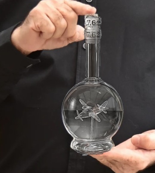 - Botella de vidrio superior que rinde homenaje a la Fuerza Aérea.