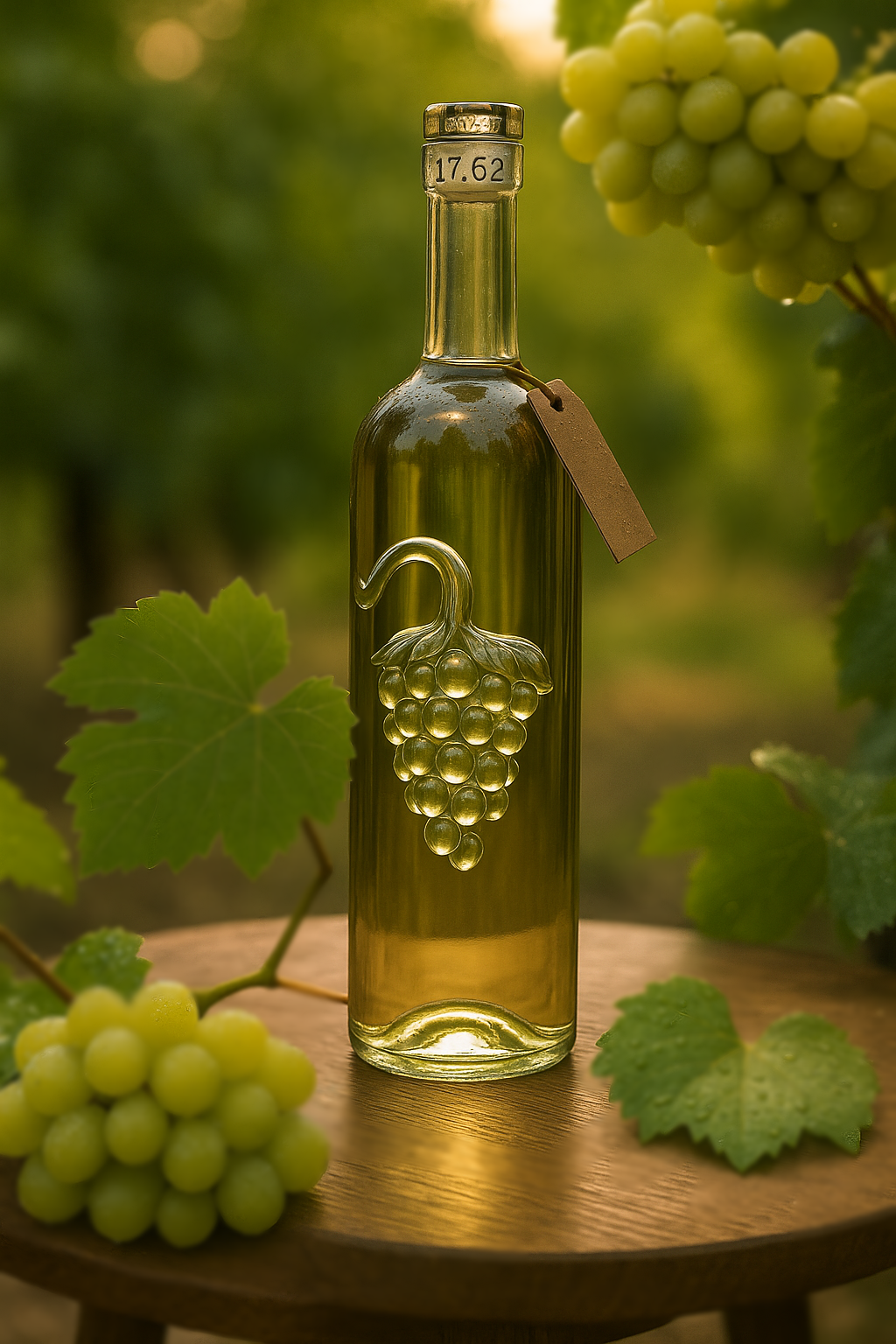 Una expresión de arte y cultura se fusiona con nuestra profunda tradición vitivinícola para dar vida a este exclusivo diseño en vidrio. En su interior, un delicado racimo de uvas cuelga elegantemente, transformando la botella en una auténtica pieza de colección que captura la esencia de la vid.